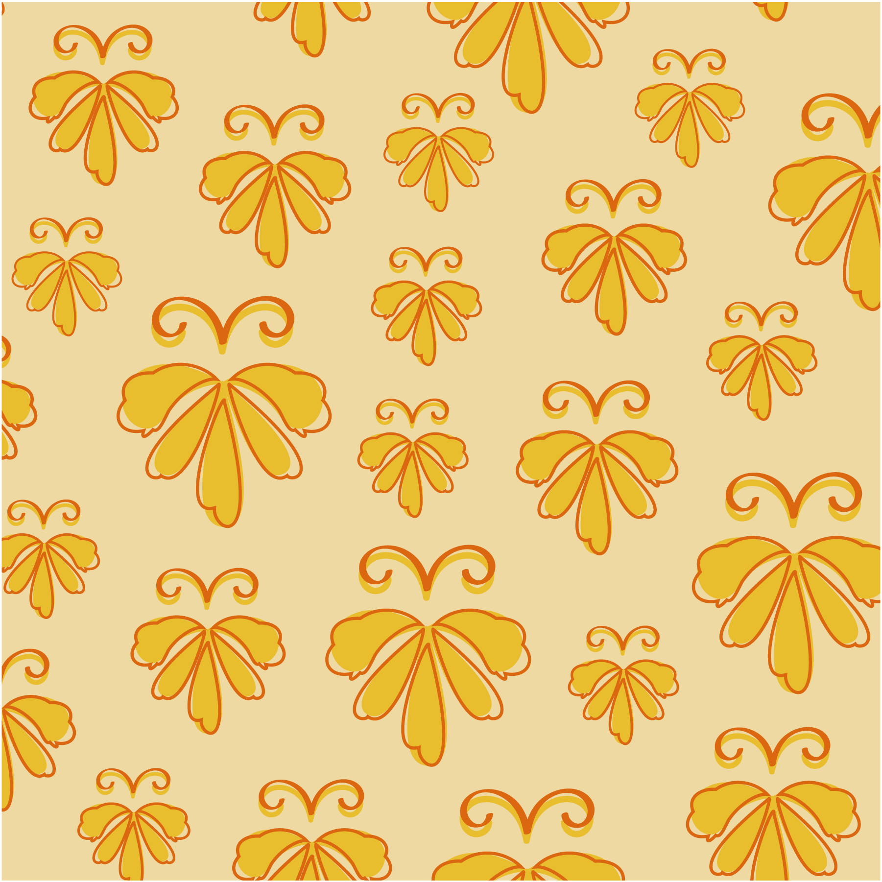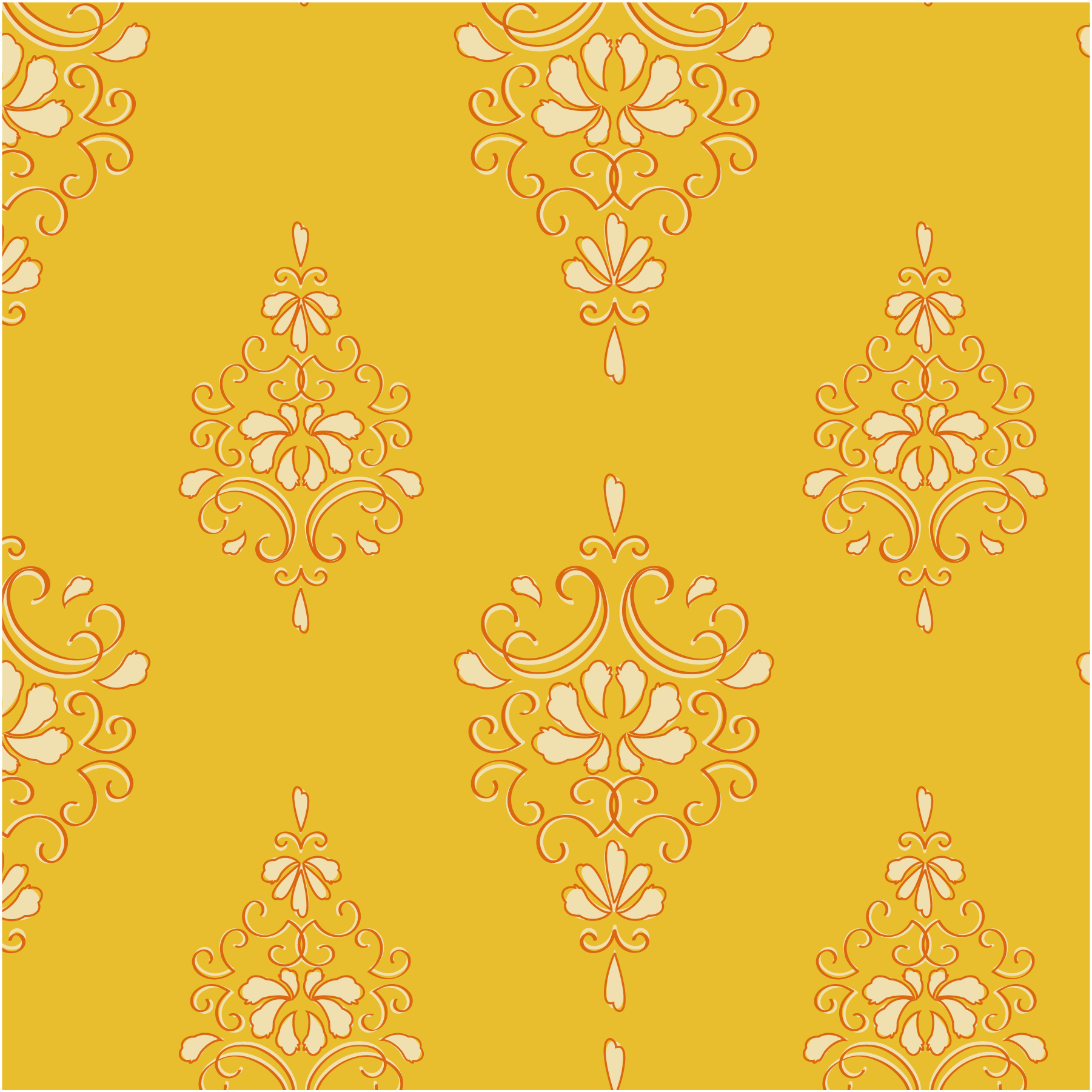 This collection was inspired after a visit to Osbourne House, where Queen Victoria and Prince Albert use to share their summers. The orange colour scheme translates into glorious summer days, mossy greens echoing the gardens beyond the glass and rose pinky maroons borrow from fading velvet drapes. As sunlight slips through tall sash windows and catching on carved wood and curling ironwork, every surface tells a story. Motifs repeat with careful intension, some dense and ornate, others allow a bit more space to be admired. The smaller details line up neatly, where elegance lingers, softened by age, were beauty is found in pattern, rhythm and the gentle passage of time.
